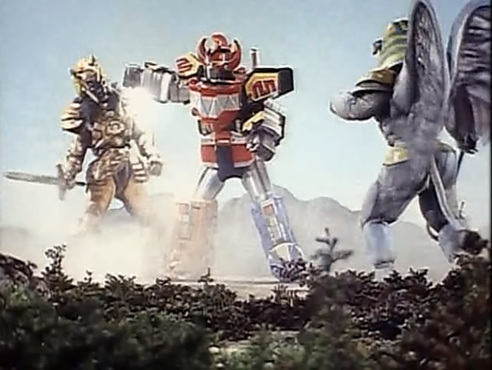 Oh boy. After last week, I was thinking Power Rangers and Zyuranger might actually be about even in quality, but this week's showing wasn't even close. Power Rangers was over quick, I'll give it that, but even though Zyuranger had two episodes, they seemed to go quickly as well. It wasn't Shakespeare or anything, but it'd make a pretty good D&D module with some sweet treasure at the end.